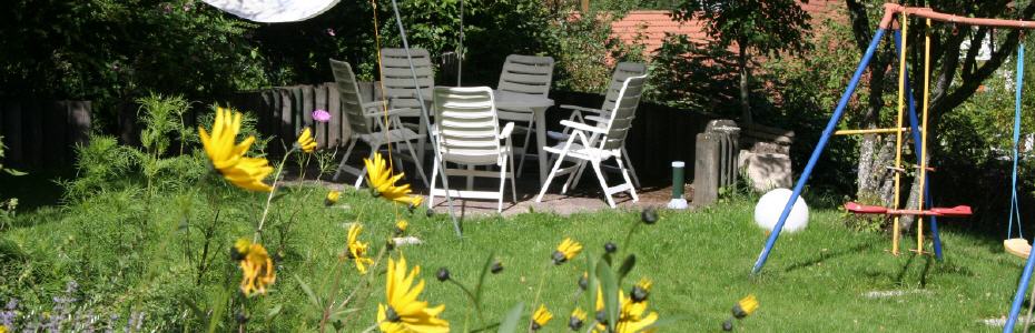 Hier finden Sie Ruhe und Erholung. Von der Wohnung aus direkt in den Garten. Im Sommer können Sie den Freisitz für Mahlzeiten im Freien nutzen.
