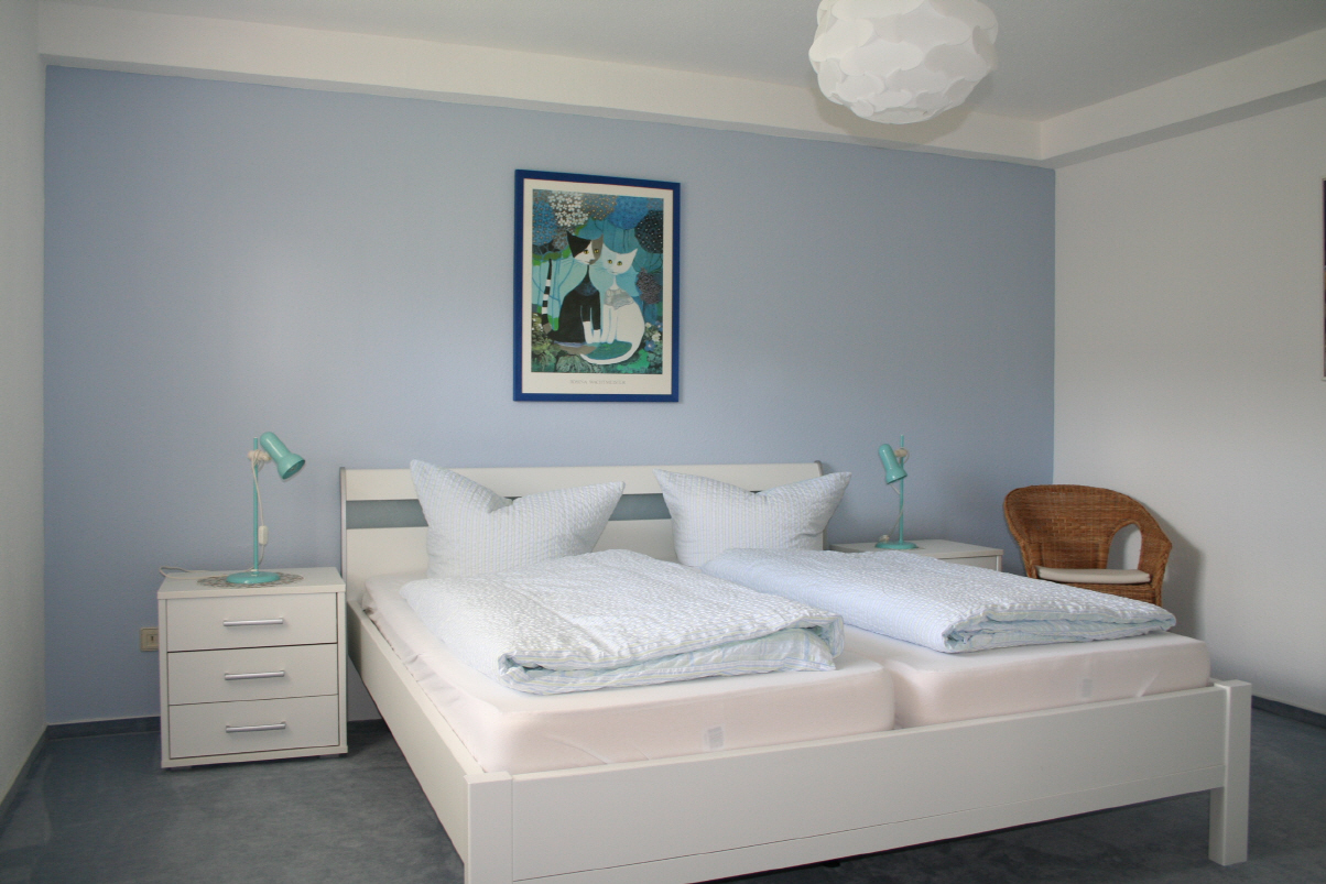 Schöne 2-Zimmerwohnung, Typ B. Separater Eingang, ebenerdig zum Garten mit großem Freisitz. Ruhige zentrale Hanglage. Die Wohnung ist zertifiziert mit *** nach den Richtlinien des Deutschen Tourismusverbandes. Die Wohnung enthält einen Wohnraum mit Küchenzeile, Geschirrspüler, separates Schlafzimmer, Flur, Dusche, WC und ist komplett eingerichtet. LCD-SAT-TV, Stereoanlage, Geschirrspüler sind enthalten. Liege- und Spielwiese. Gartenhaus mit Gartenmöbel und Holzkohlegrill.